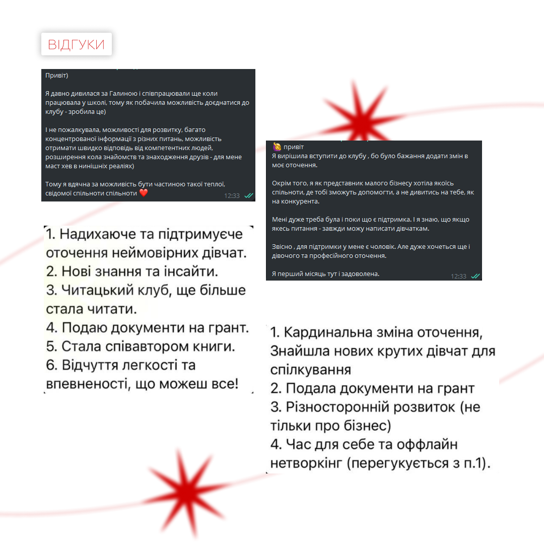 Ми з тобою зустрінемось 6 січня 2024 о 19:00 онлайн. Для цього тобі знадобиться телефон або комп’ютер і 1,5 години на день для себе та своєї справи. Посилання на трансляції будеш отримувати в Telegram-бот та в чаті. Тобі не потрібно завантажувати інші програми. Достатньо перейти за посиланням з телефона або комп’ютера.